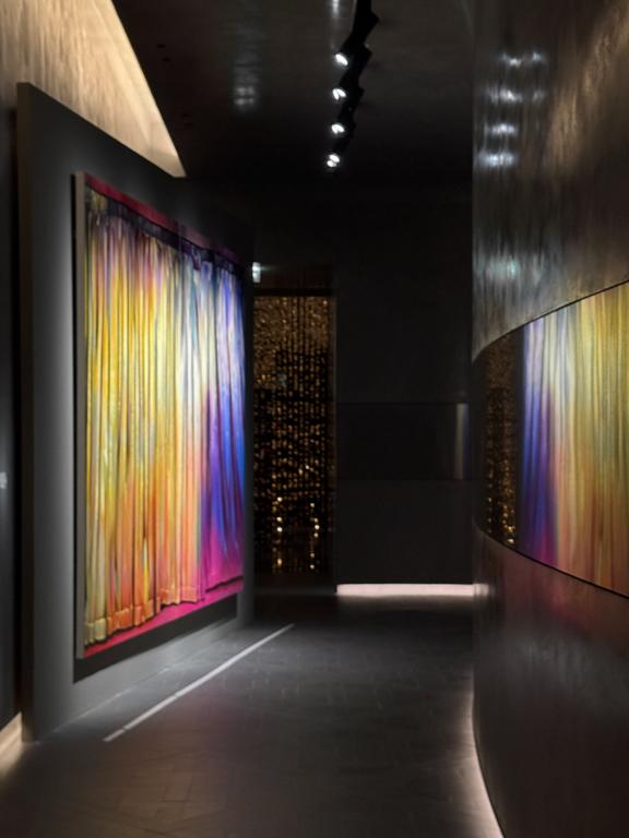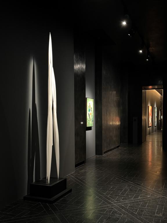 La collection de la famille royale Al Thani (Qatar) comprend un nombre important d'œuvres d'art contemporain. Curatée par le commissaire Olivier Berggruen, une autorité en matière d'art contemporain, cette exposition présentait une sélection rigoureuse de peintures et d'objets d'art modernes, issus de la collection privée, et a été organisée dans une galerie dédiée à Paris. Contrairement aux précédentes expositions de la collection, qui avaient pour thème l'histoire, la prédominance de tableaux de grande taille et de sculptures abstraites a nécessité des ajustements sur place des installations d'éclairage existantes, conçues pour des œuvres d'art plus petites, tels que l'ajout de filtres et la recherche d'autres emplacements pour leur installation. Il s'est avéré difficile d'obtenir une esthétique homogène pour une telle exposition, où convergent des œuvres de grande taille et de styles variés. À cela s'ajoutait le fait que le concept initial mettait l'accent sur la stimulation sensorielle : du chocolat était distribué à l'entrée et des diffuseurs de parfum étaient placés dans une salle d'exposition. La lumière, considérée comme un matériau à part entière, a été conçue pour renforcer l'immersion. Elle a été utilisée pour mettre en valeur les œuvres d'art tout en s'intégrant harmonieusement dans l'espace.